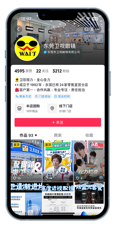 卫视眼镜抖音官方账号是一个集产品介绍、优惠活动、专业知识、线上直播于一体的官方账号,致力于打造一个全方位、多维度的眼镜交流平台。